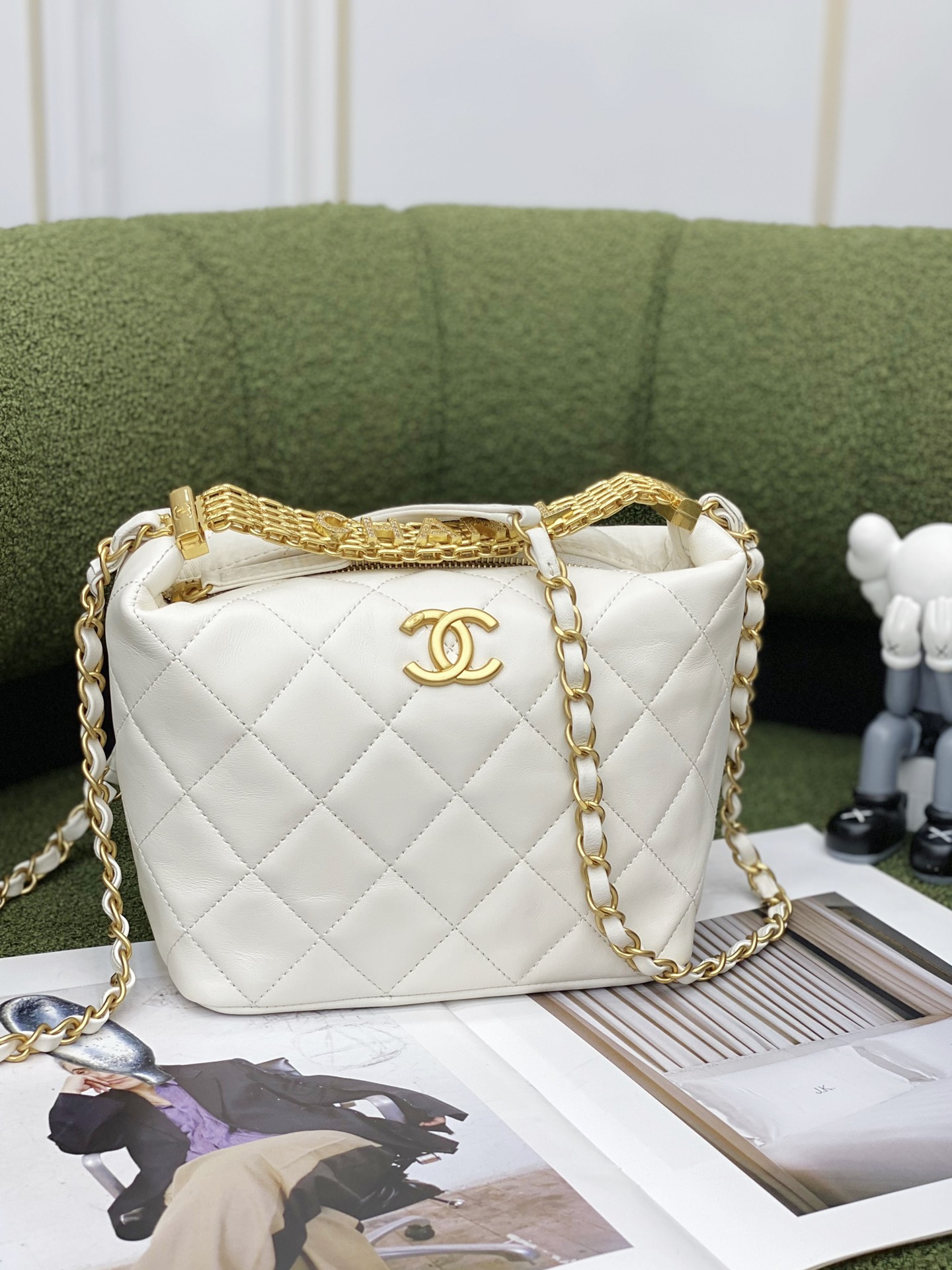 CHANEL WOC’s signature pebbled gold buckle chain bag Dimensions: 12.3 x 19.2 x 3.5cm