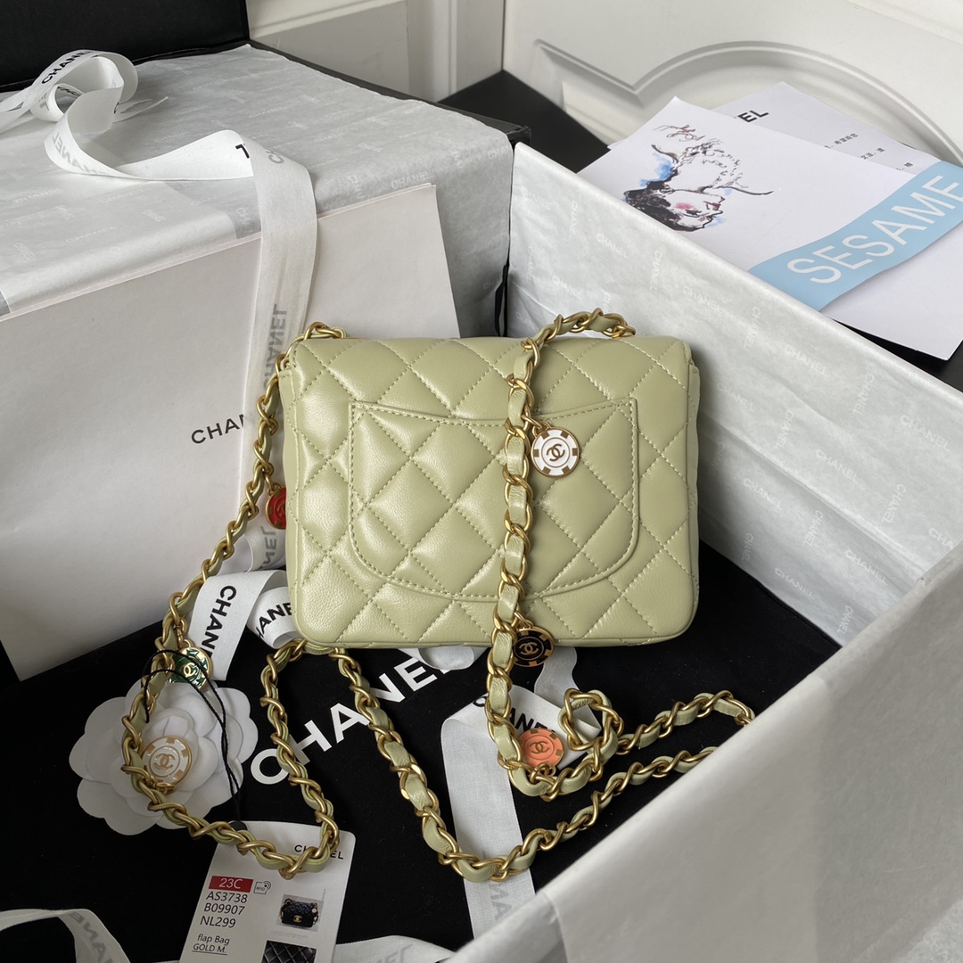 Chane123C Autumn and Winter New Products AS3738 Must Casino Series Fang Fat Mouth Cover Bag Sheepskin Enamel Gold Coin Pendant Chain Fashion Rest Bag Single Flap Lightweight, Simple and Fashionable The chain has more design sense It is also beautiful and beautiful Debut is the peak v No one can refuse, you can be excited~ A fashionable bag that is also a little lazy and casual! Size: 12.5*16*6cm