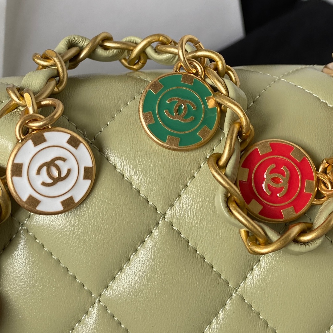 Chane123C Fall/Winter AS3738 Casino Series Fang Fat Mouth Cover Bag Sheepskin Enamel Gold Coin Pendant Chain Fashion Rest Bag