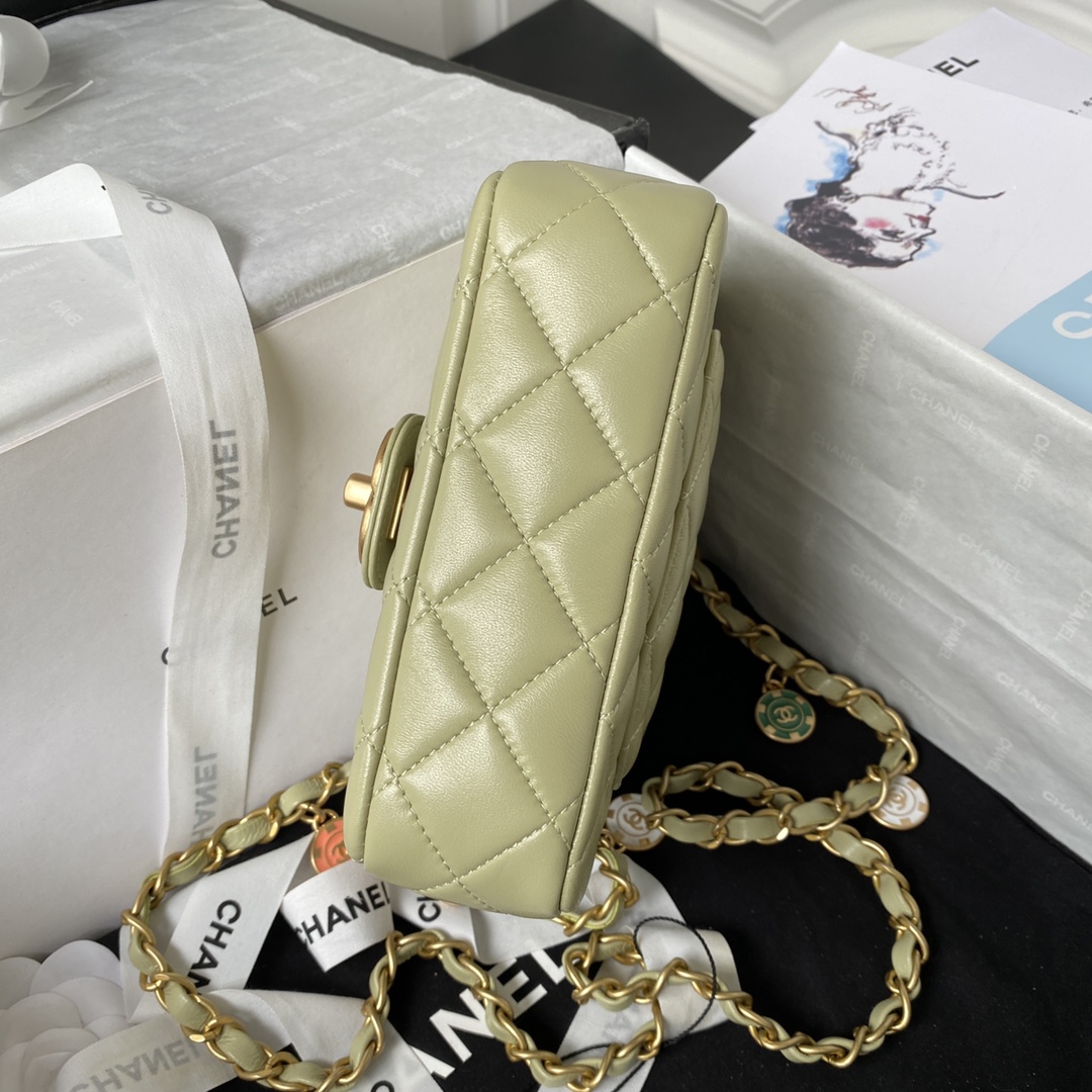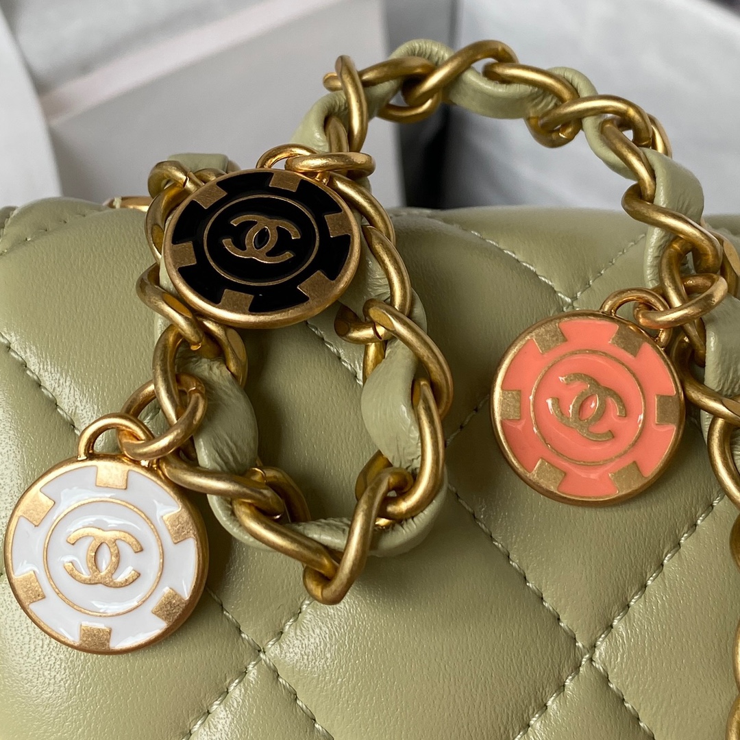 / Chane123C Fall/Winter AS3738 Casino Series Fang Fat Mouth Cover Bag Sheepskin Enamel Gold Coin Pendant Chain Fashion Rest Bag