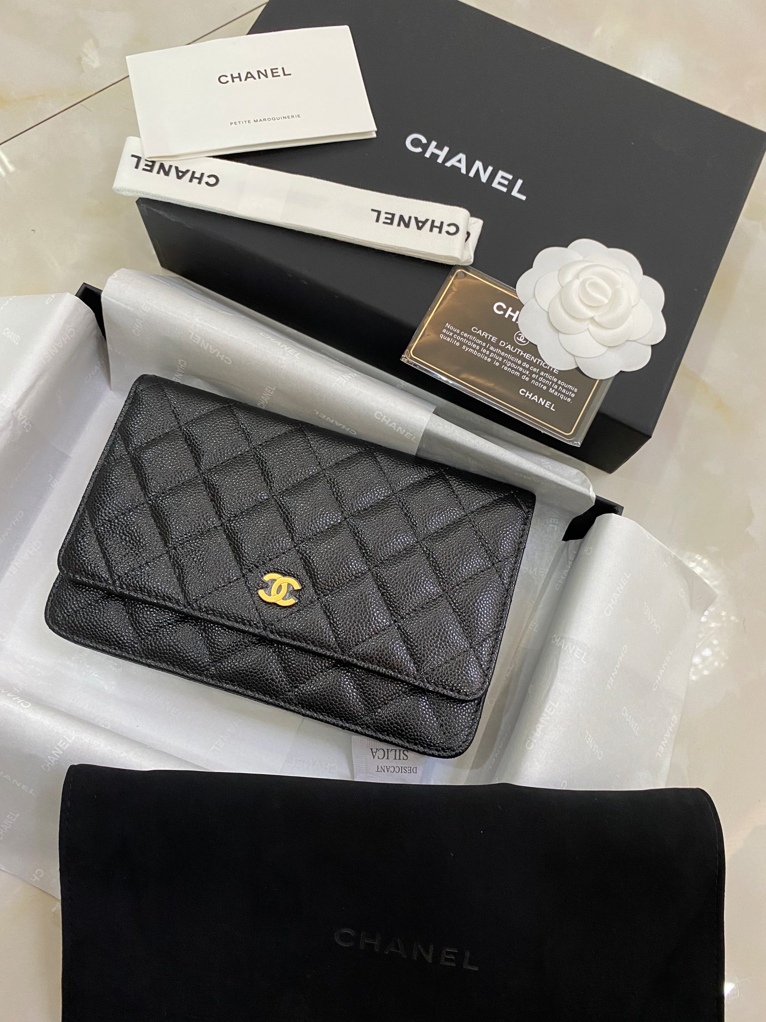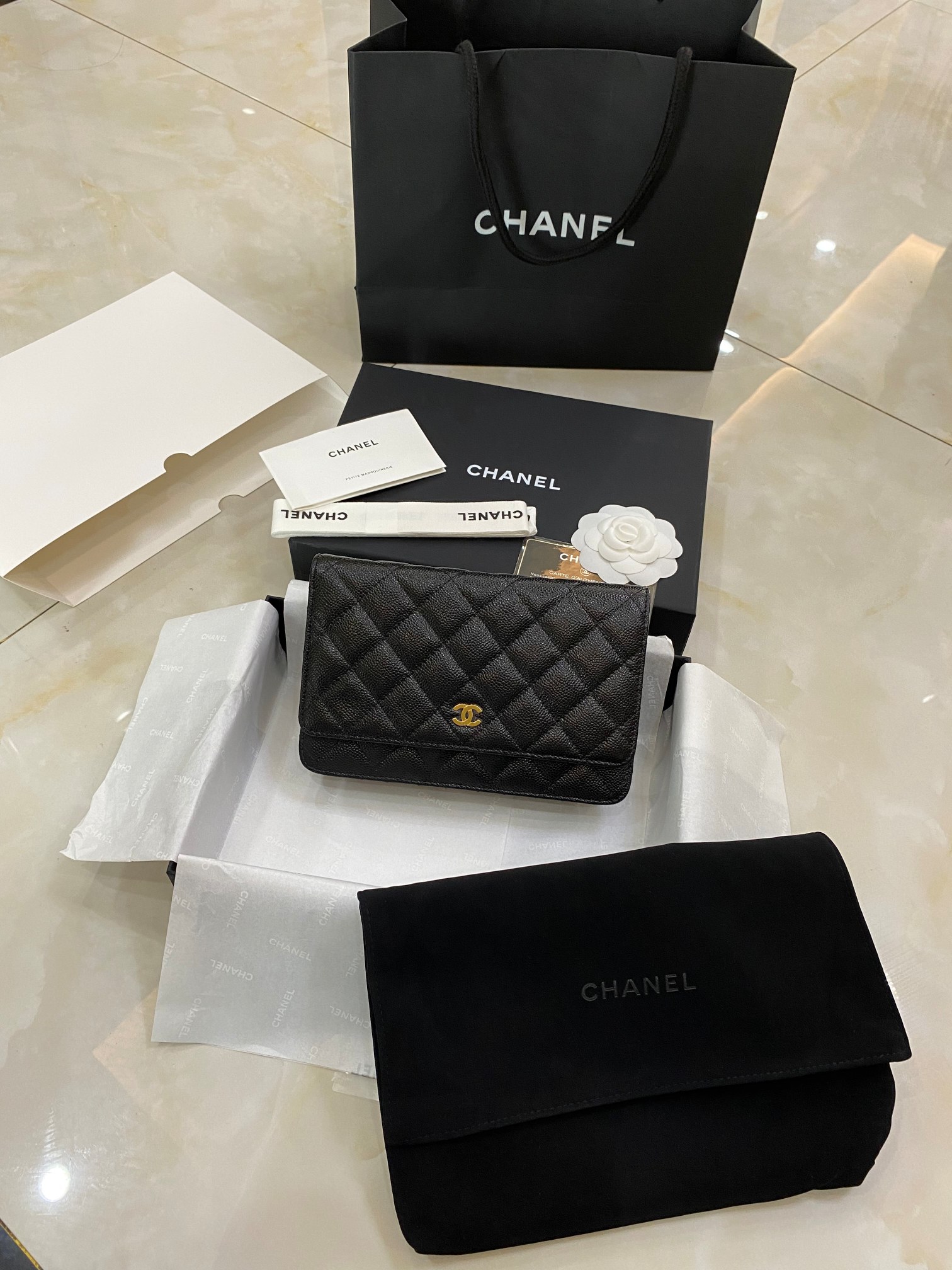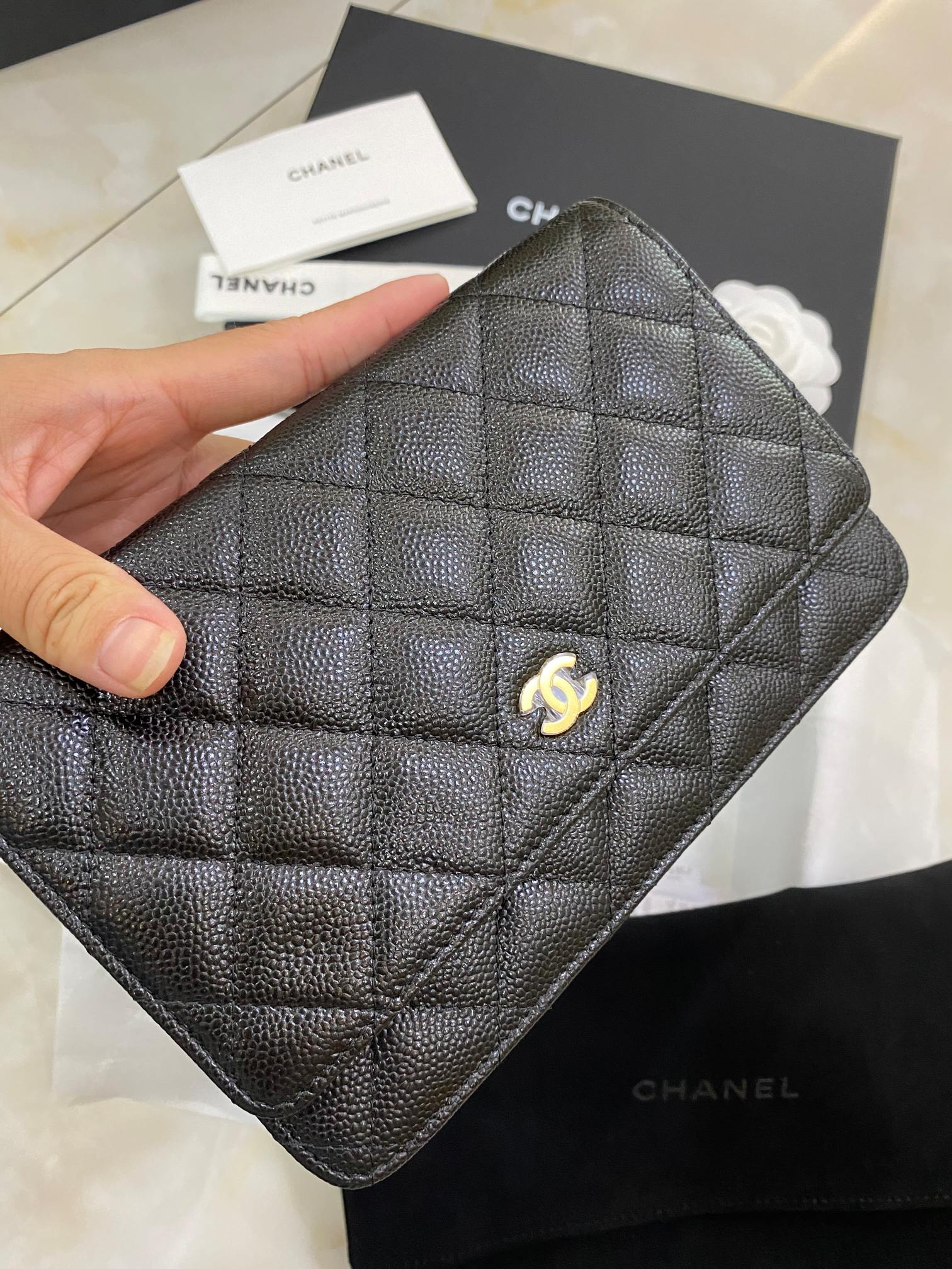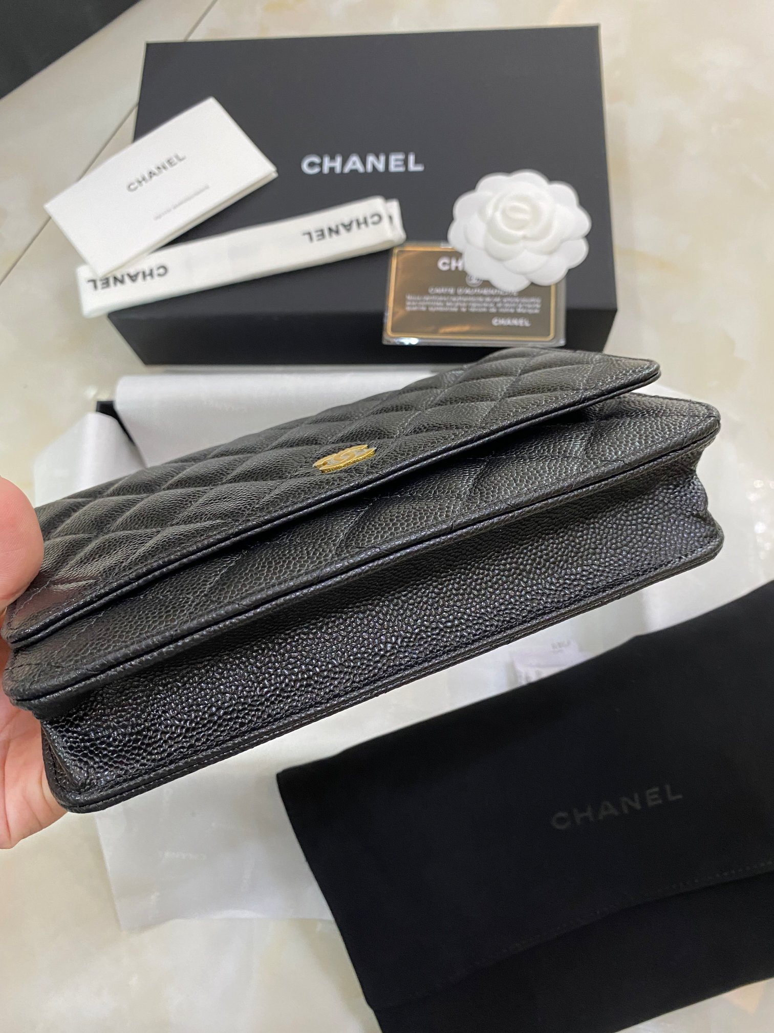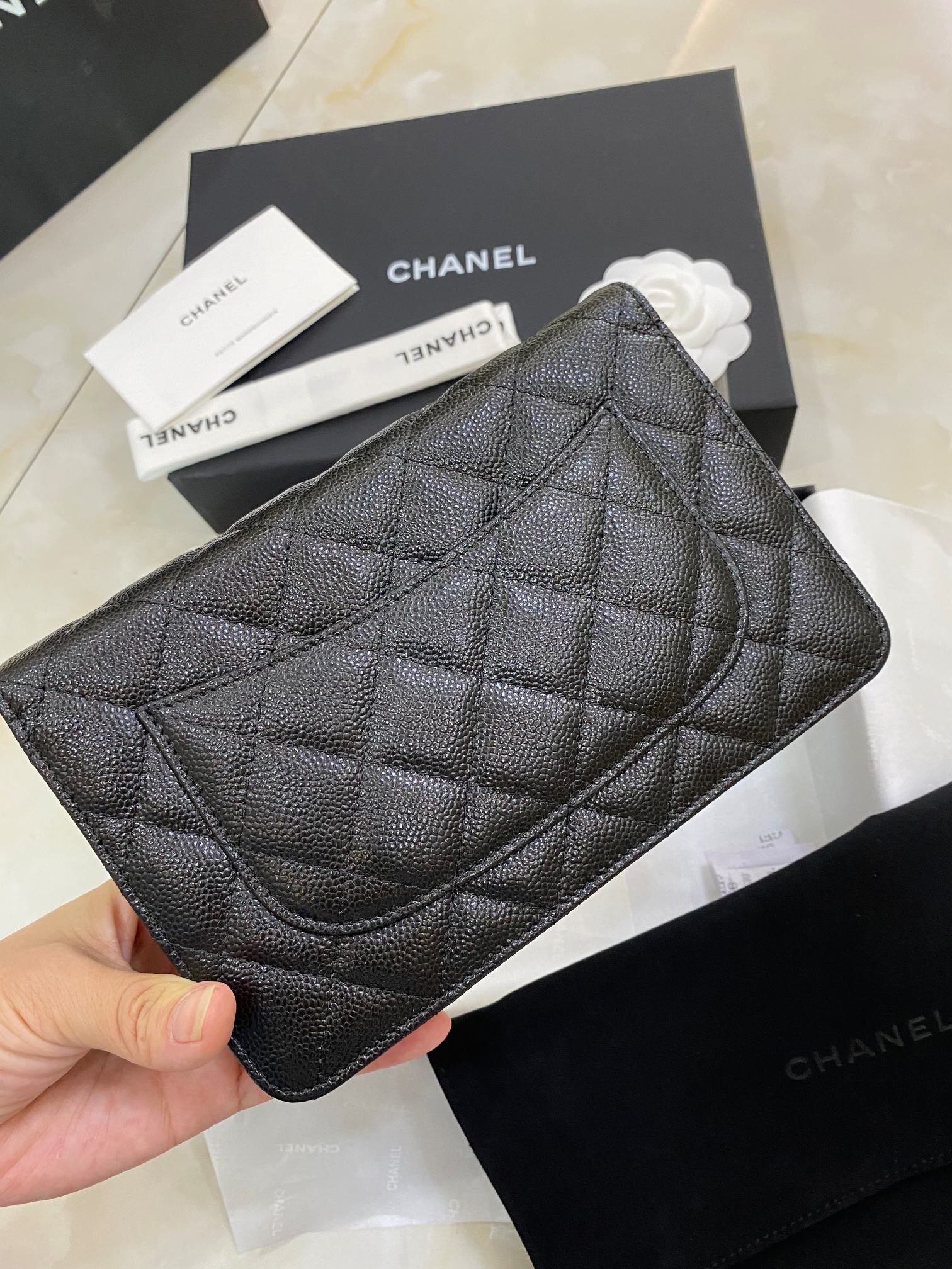 / CHANEL WOC’s signature pebbled gold buckle chain bag Dimensions: 12.3 x 19.2 x 3.5cm
